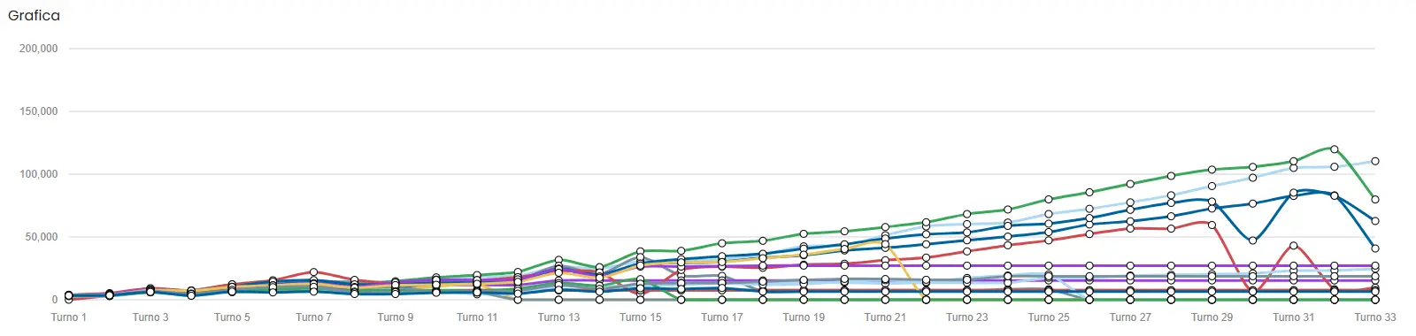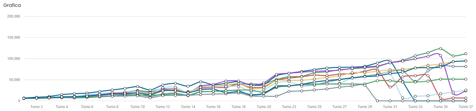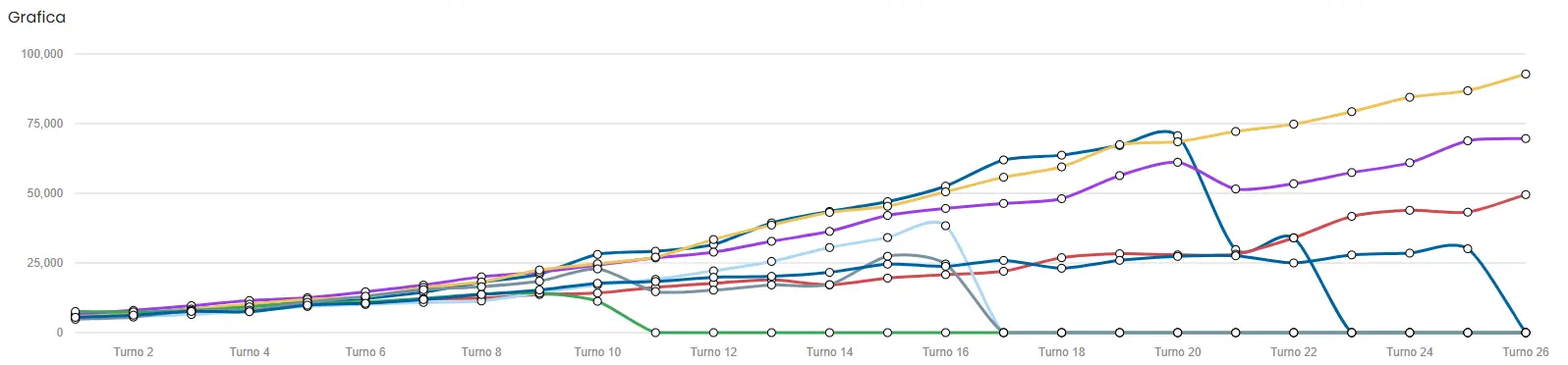 Since there are so many players, we are going to create another chart and legend focusing on the last 10 turns.