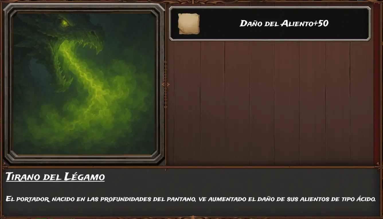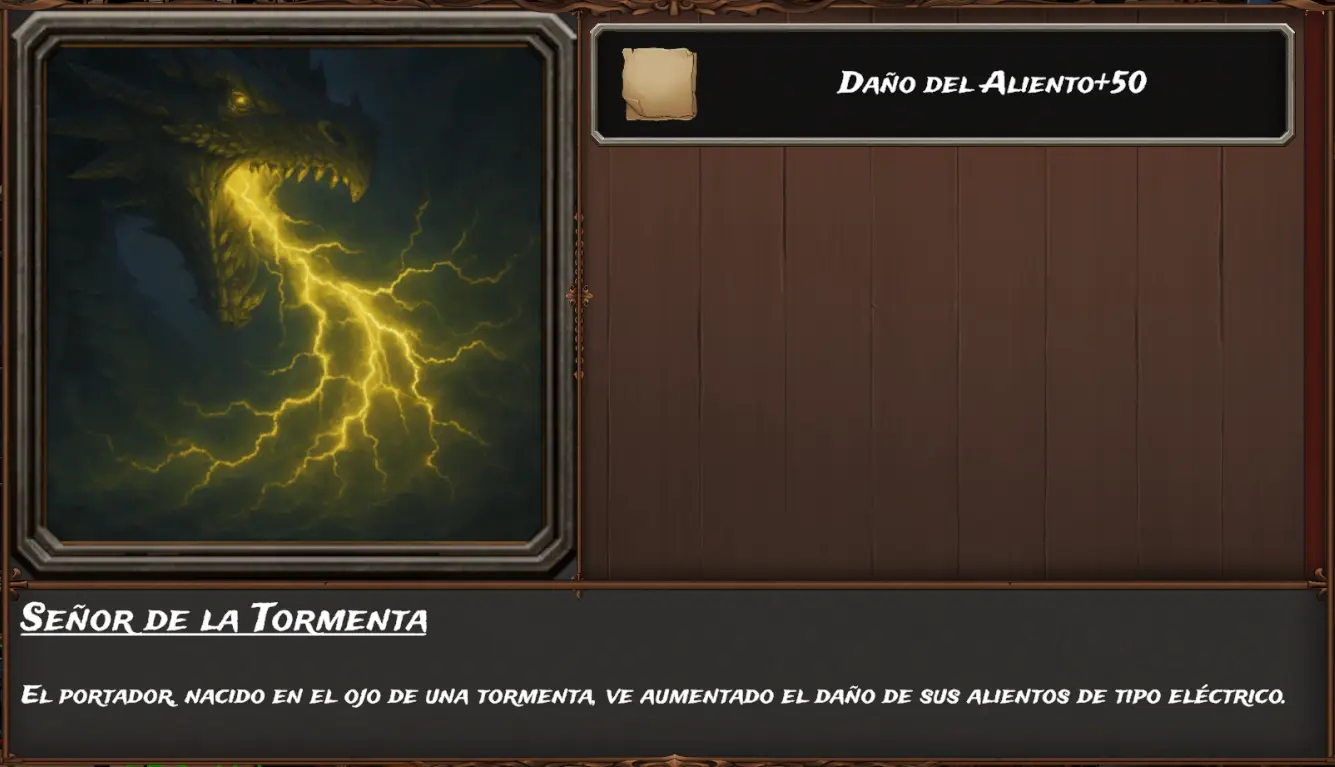 Las dotes que podemos obtener tras combatir es alguna del siguiente listado, tenemos que tener en cuenta que si ya tienes una de estas dotes, no puedes obtenerla por segunda vez... Sino que simplemente se hace el sorteo sin tener ese elemento en cuenta. Tirano del légamo, Vástago del hielo, Señor de la tormenta y Forjado en fuego lógicamente ocupan el mismo espacio de dote y solo puedes obtener el del tipo elemental del dragón.