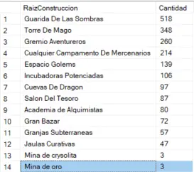 Ahora vamos a analizar cada nivel de construcción por separado, es decir, Gremio de Aventureros I y Gremio de Aventureros II se cuentan por separado.