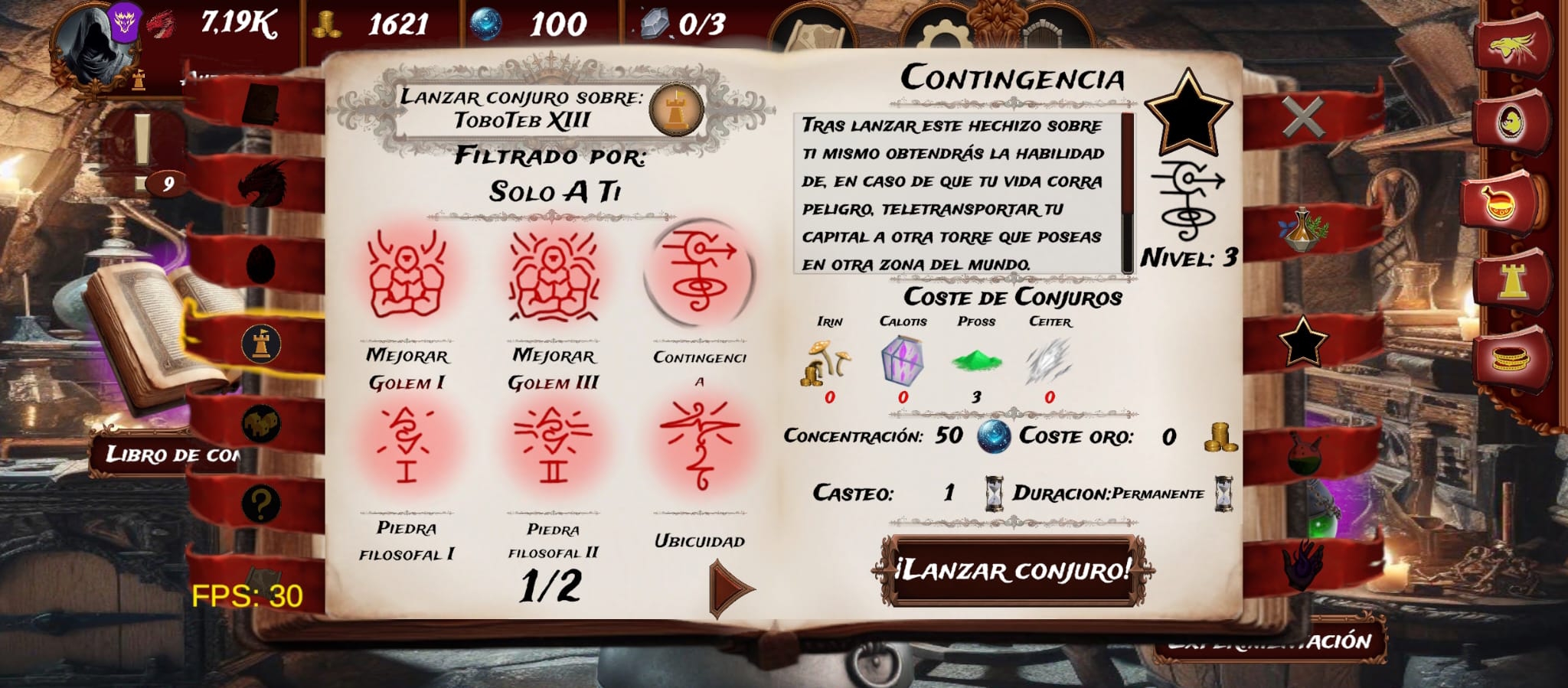 Empecemos por lo básico, ¿qué es una Contingencia?. Pues el conjuro que te puedes lanzar sobre ti mismo para evitar que te maten cuando te atacan tu capital y pierdes el combate. Sí, sí, si te atacan la capital y destruyen a tus unidades, ¡date por muerto!. A menos que te hayas lanzado ANTES la contingencia, precisamente para evitar este “inconveniente”.