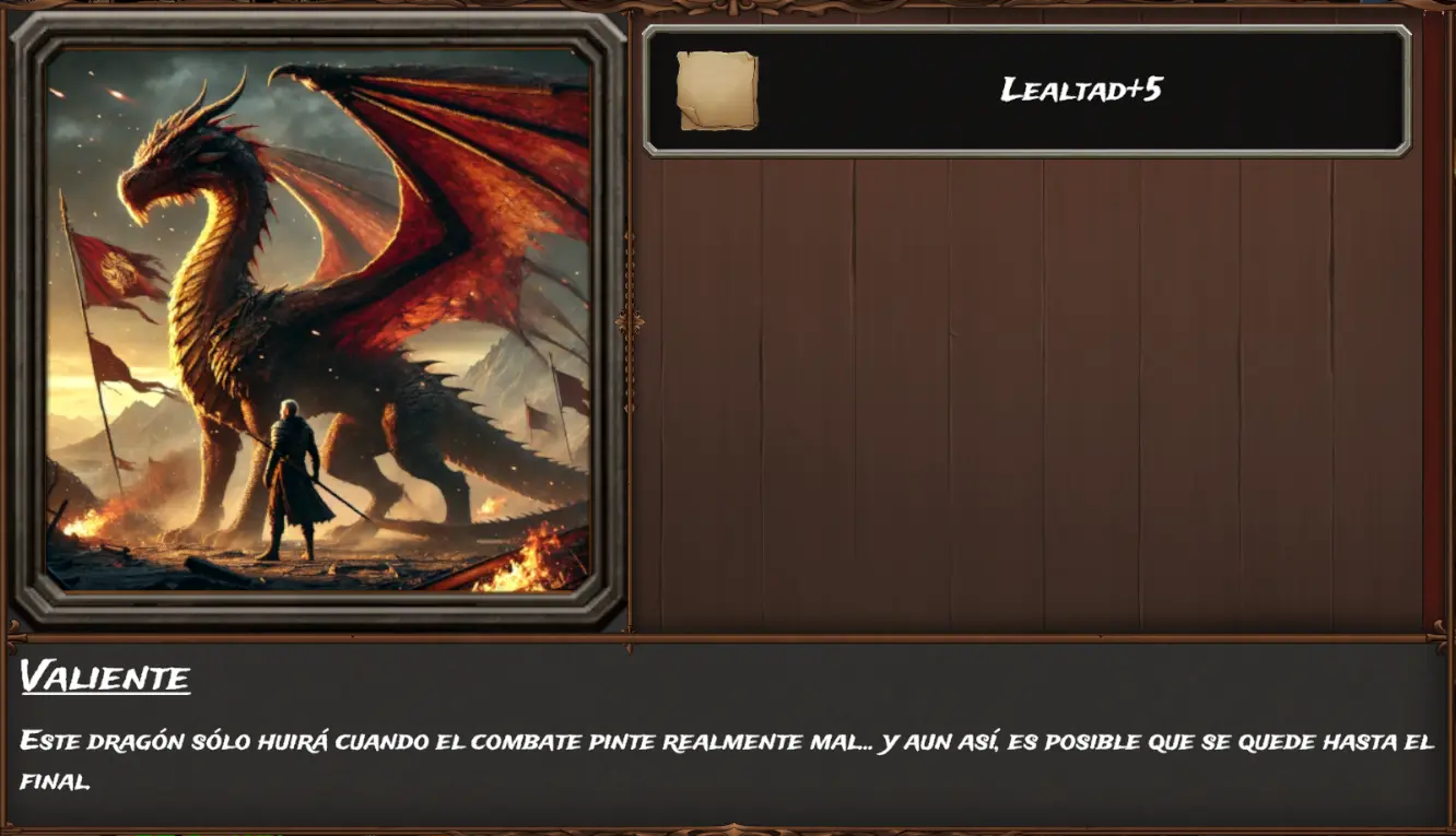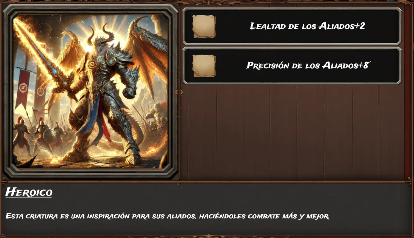 Es decir, al tener "Heroico" y "Dragón legendario" a la vez como "Heroico" nos da menos bonus tanto en (2 < 3) lealtad como en (8 < 10) precisión es como si no tuviésemos "Heroico".