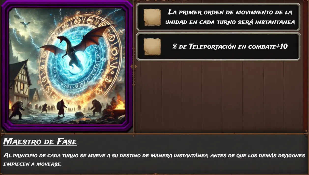 y "Sueños premonitorios", que nos da durante 1 turno la dote de "Teletransporte" en 1 dragón.