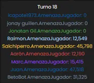 Leyenda de colores por jugador con su amenaza en el turno 18 de partida.
