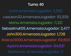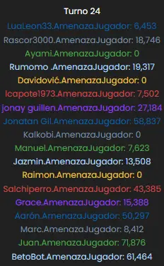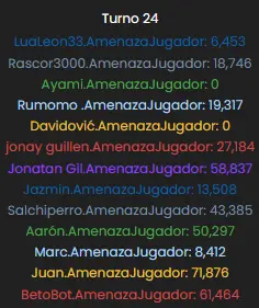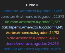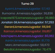 * Leyenda de colores con la amenaza de los jugadores en el turno 29.