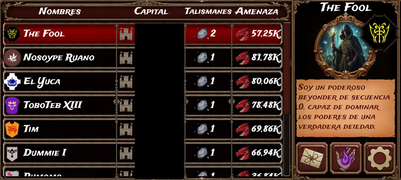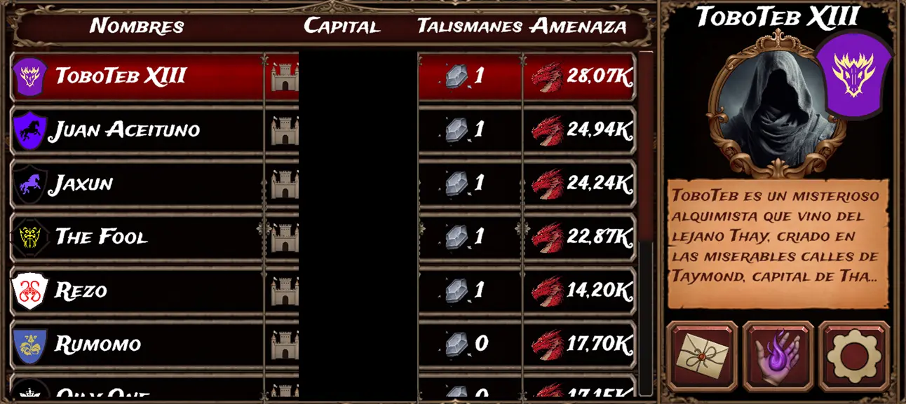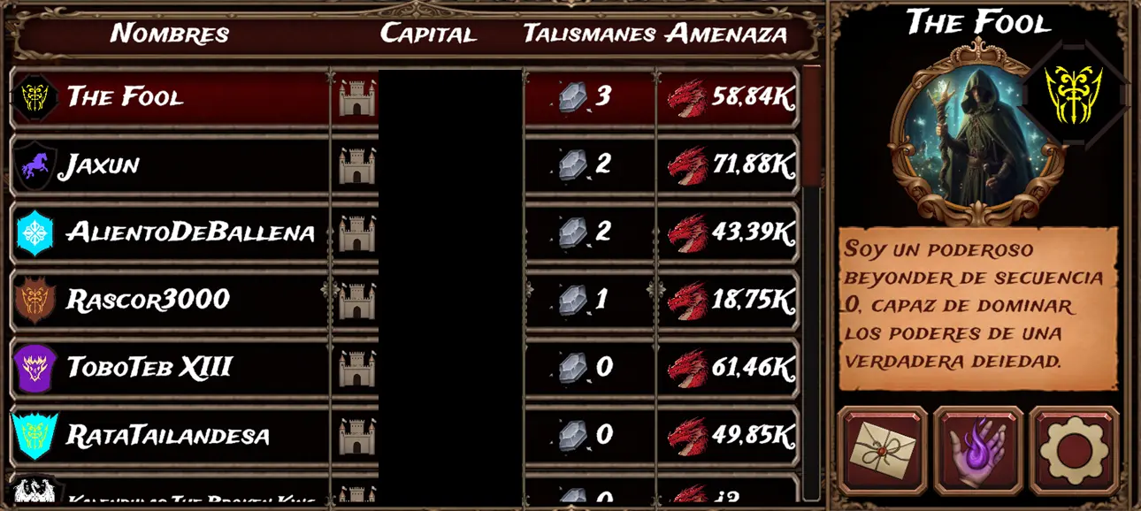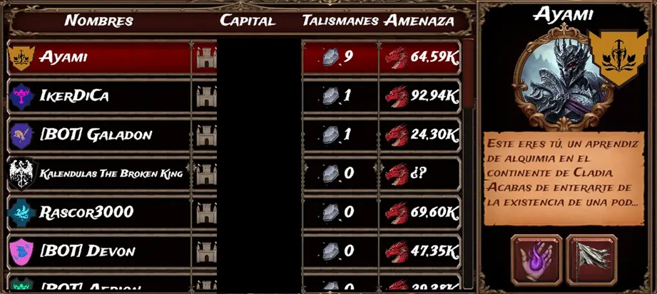 "Novato Party" is the match reserved exclusively for the new Alchemists. As we mentioned last week, the player leading the game was Rascor3000. He wasn't just dominating because he was the only player with talismans, but he was also the player with the highest threat by a significant margin... However, it seems that what we’ve been predicting since the first week has finally happened: the giant Rascor3000 has been "defeated" by the challenger, Ayami, who had been in second place for the entire match, following the former leader, Rascor, very closely.