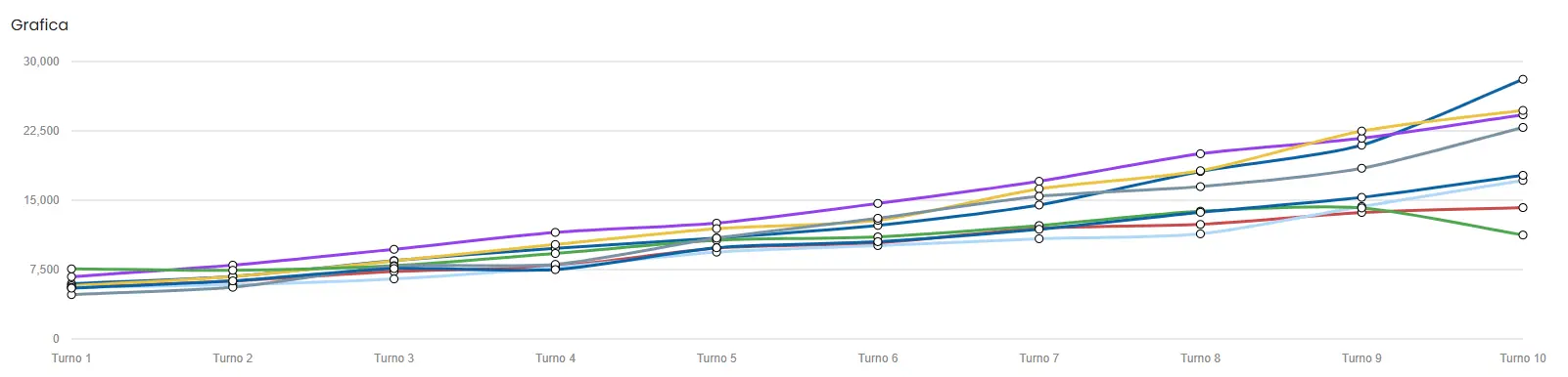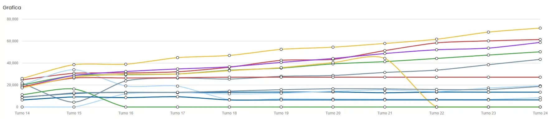 Since there are so many players, we are going to create another chart and legend focusing on the last 10 turns.