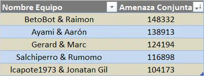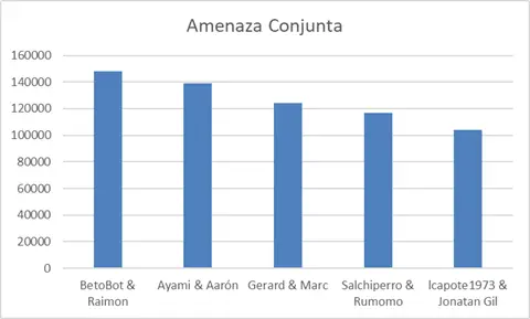 We can see that Aarón has reclaimed the lead in terms of threat, although he is being followed very, very closely by Salchiperro and Toboteb.