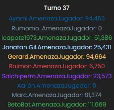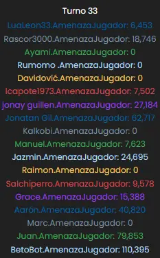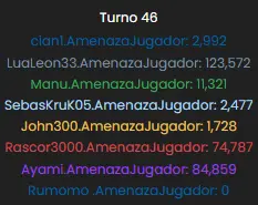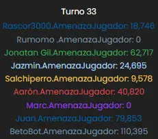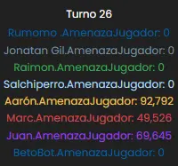 We can also see how Raimon has dropped to last place, and how Salchiperro’s threat level has plummeted over the last few turns.