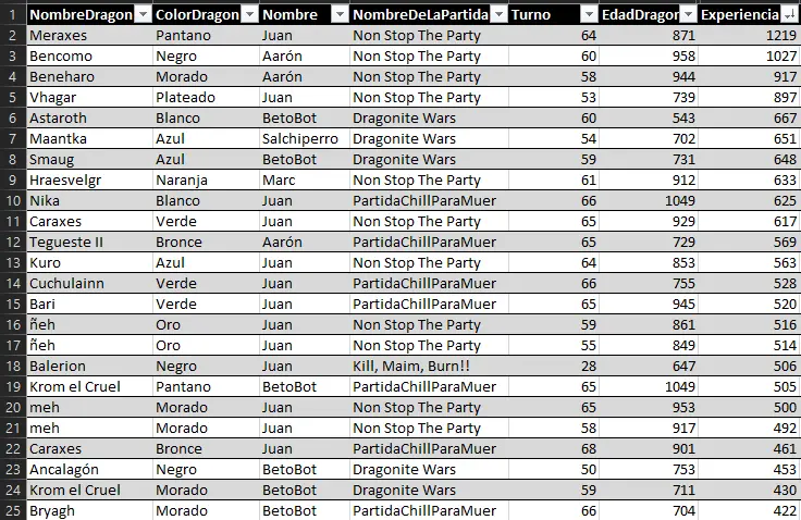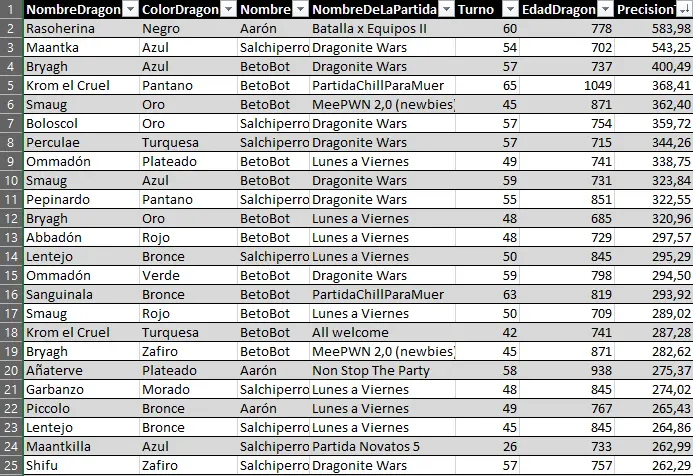 Sorprendentemente, el ranking del top 25 lo monopolizan Salchiperro, BetoBot y yo Aarón.