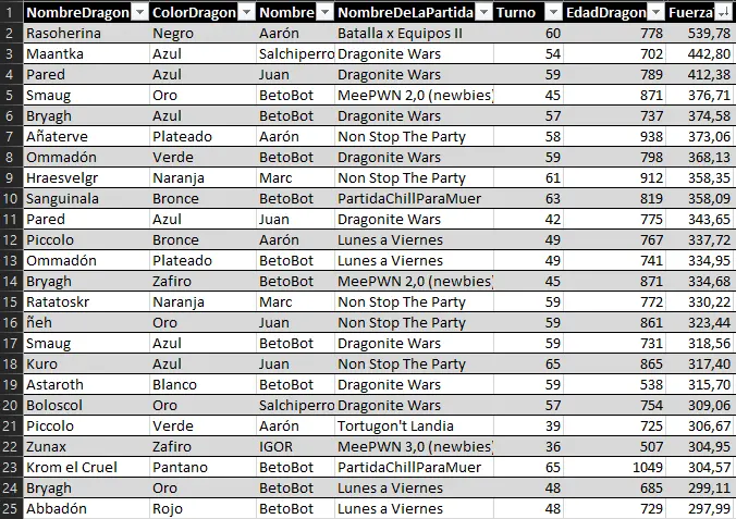 Aquí el top de dragones con mayor fuerza, una de las estadísticas más importantes de las unidades de cladia, determina cuanto daño son capaces de hacer.