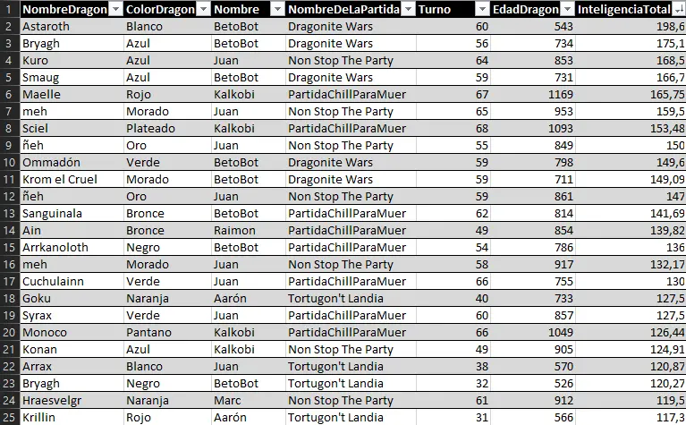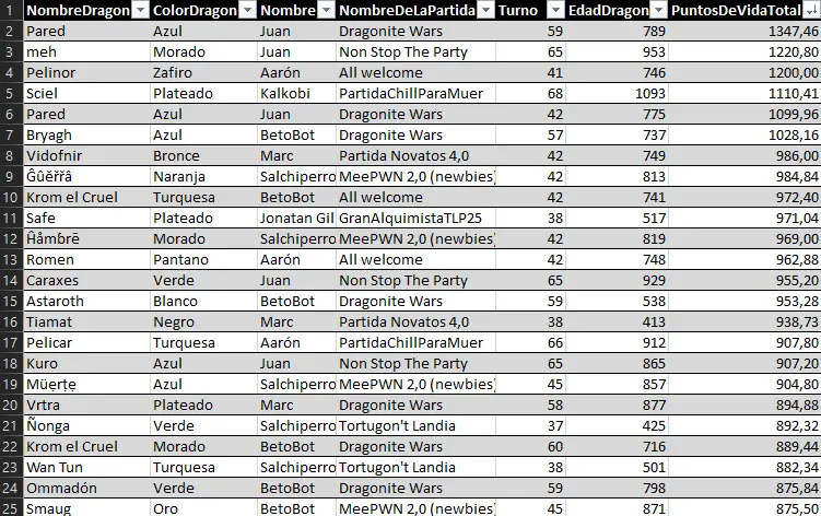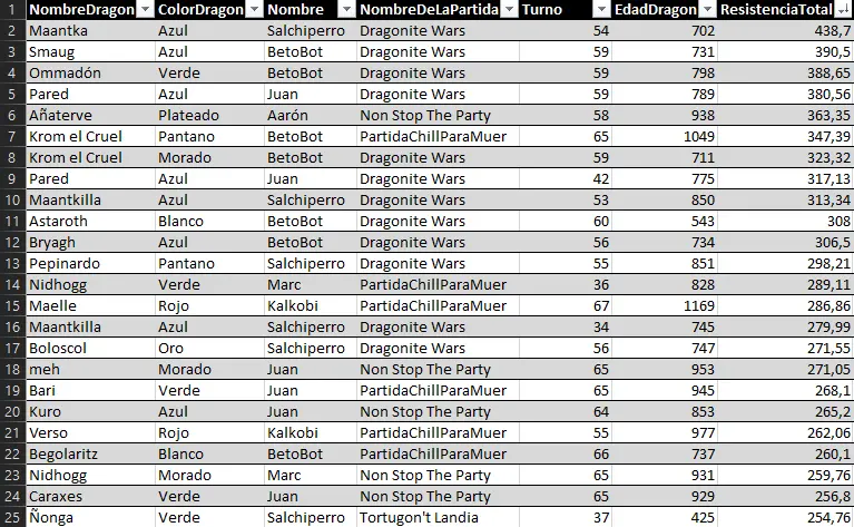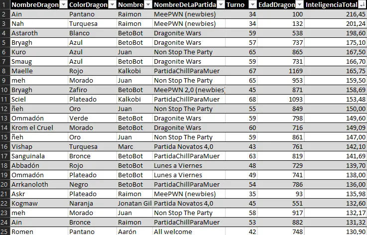 Curiosamente, Jaxun, el mejor alquimista de Cladia, el jugador que más partidas ha ganado solo ha ganado el ranking de la vida y de la experiencia... Lo cual nos genera una nueva pregunta: ¿Importará más la cantidad que la calidad de los dragones? Quiero decir, si el jugador que más partidas ha ganado NO bufa los dragones sino que invierte esa concentración en crecer más dragones... ¿Quizás es mejor 2 dragones de 200 que 1 con el doble de stats?